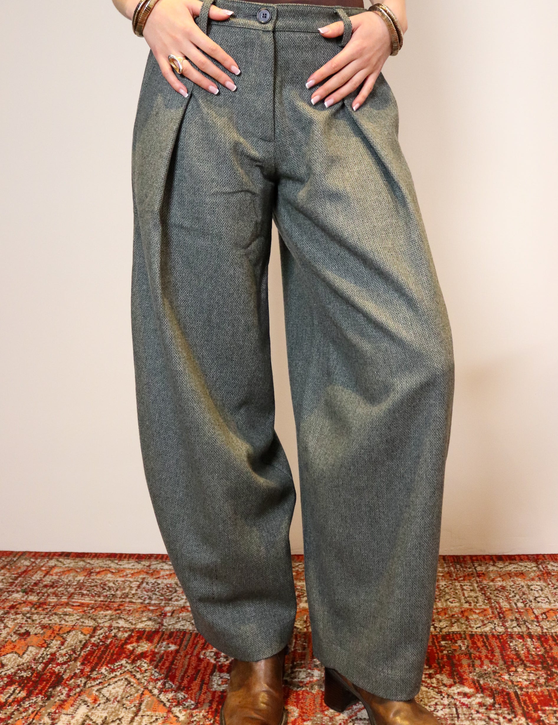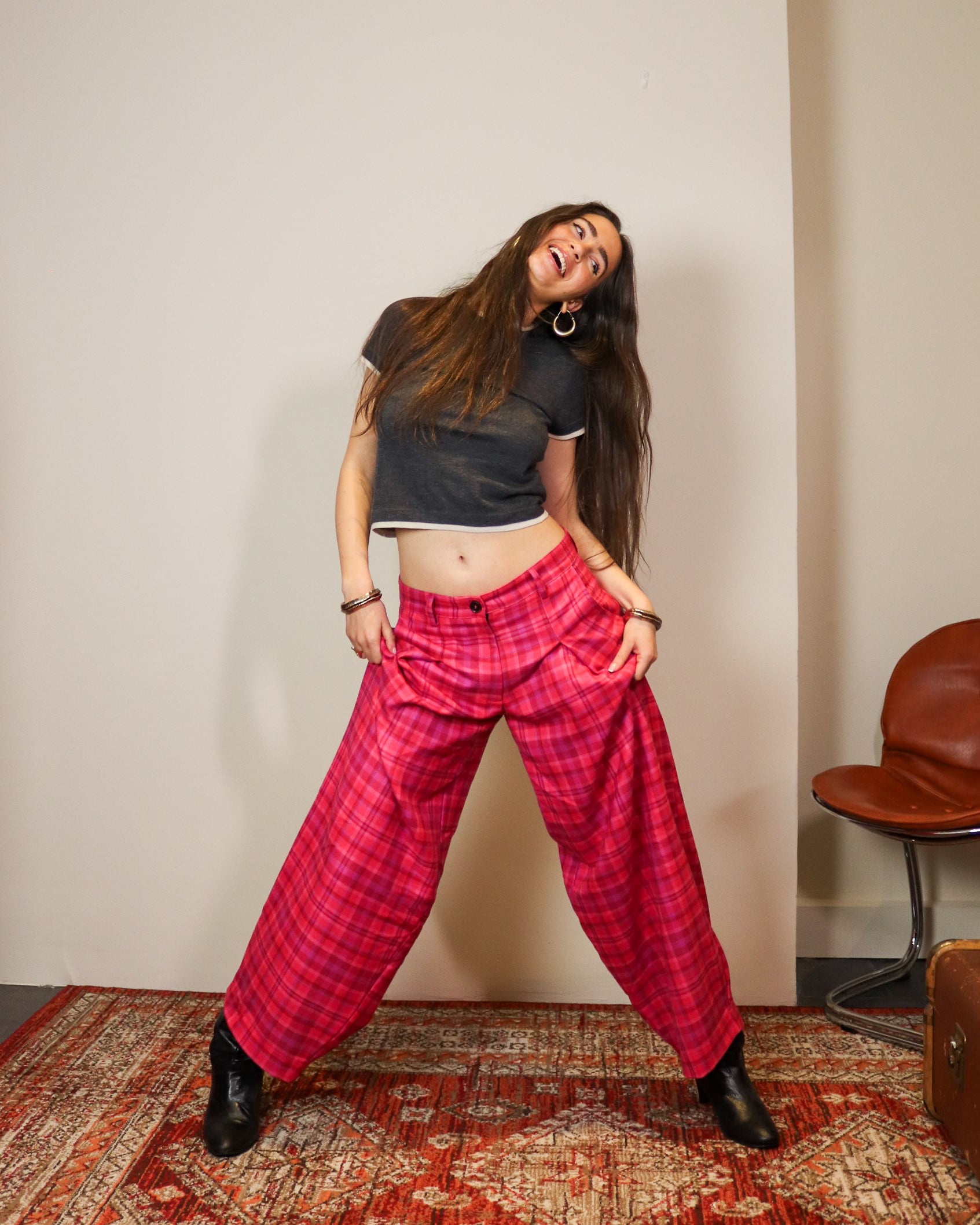 Wide‑leg, elasticated & drawstring waist, made from 5 salvaged shirts. Pick your colour way and we will choose you a mystery pair!