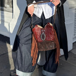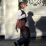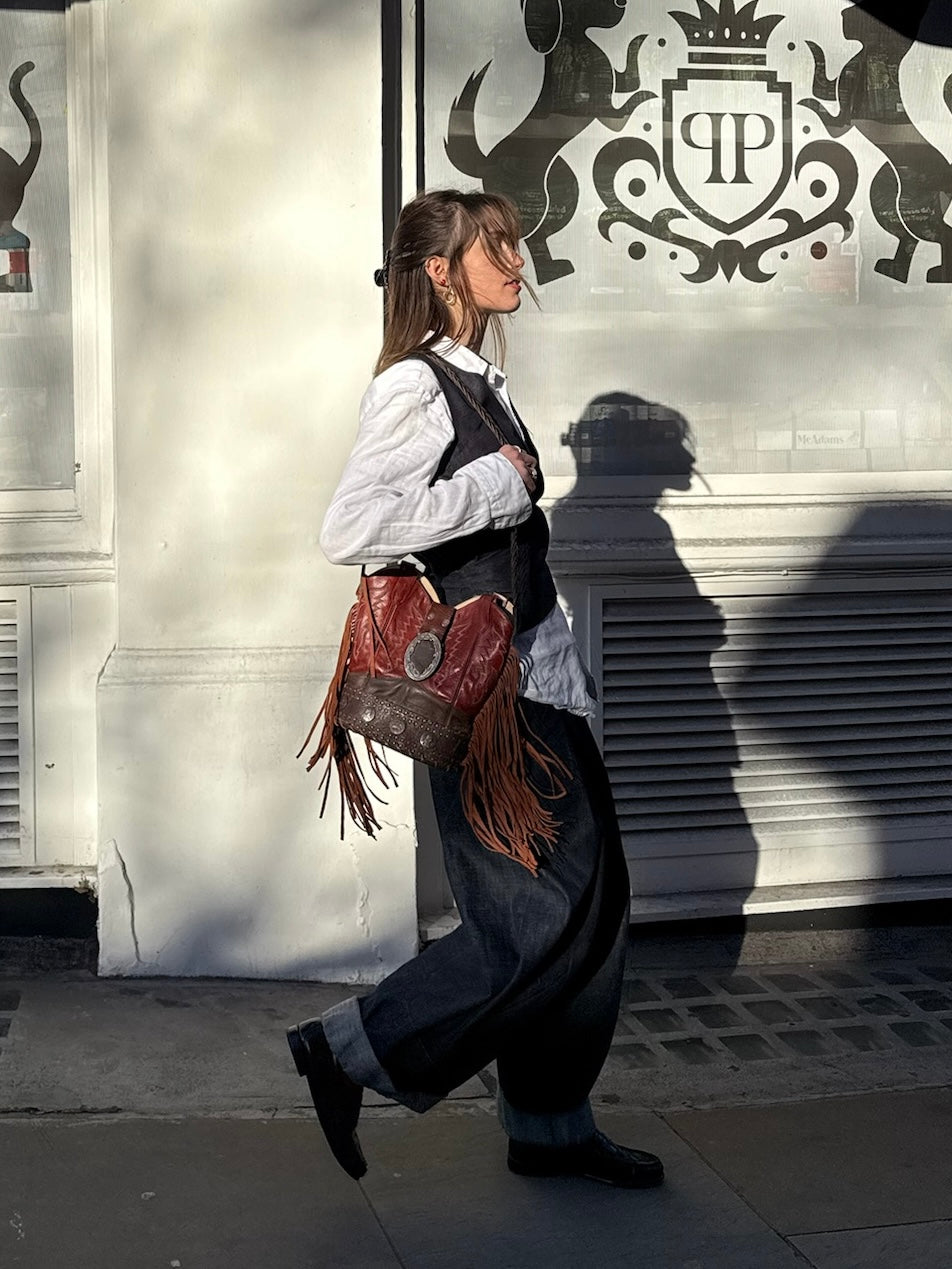 Handcrafted from 100% upcycled leather, the bags are as sustainable as they are stylish. The leather is carefully selected from damaged cowboy boots, buckles from vintage belts, giving new life to materials that would otherwise go to waste.
