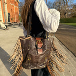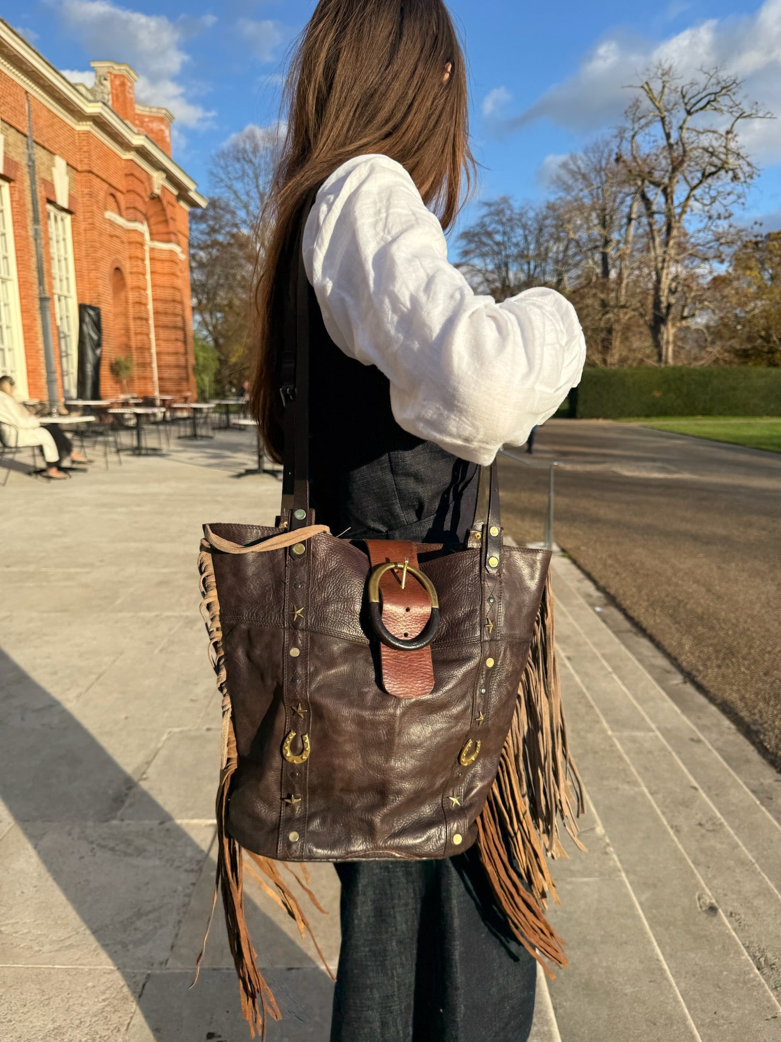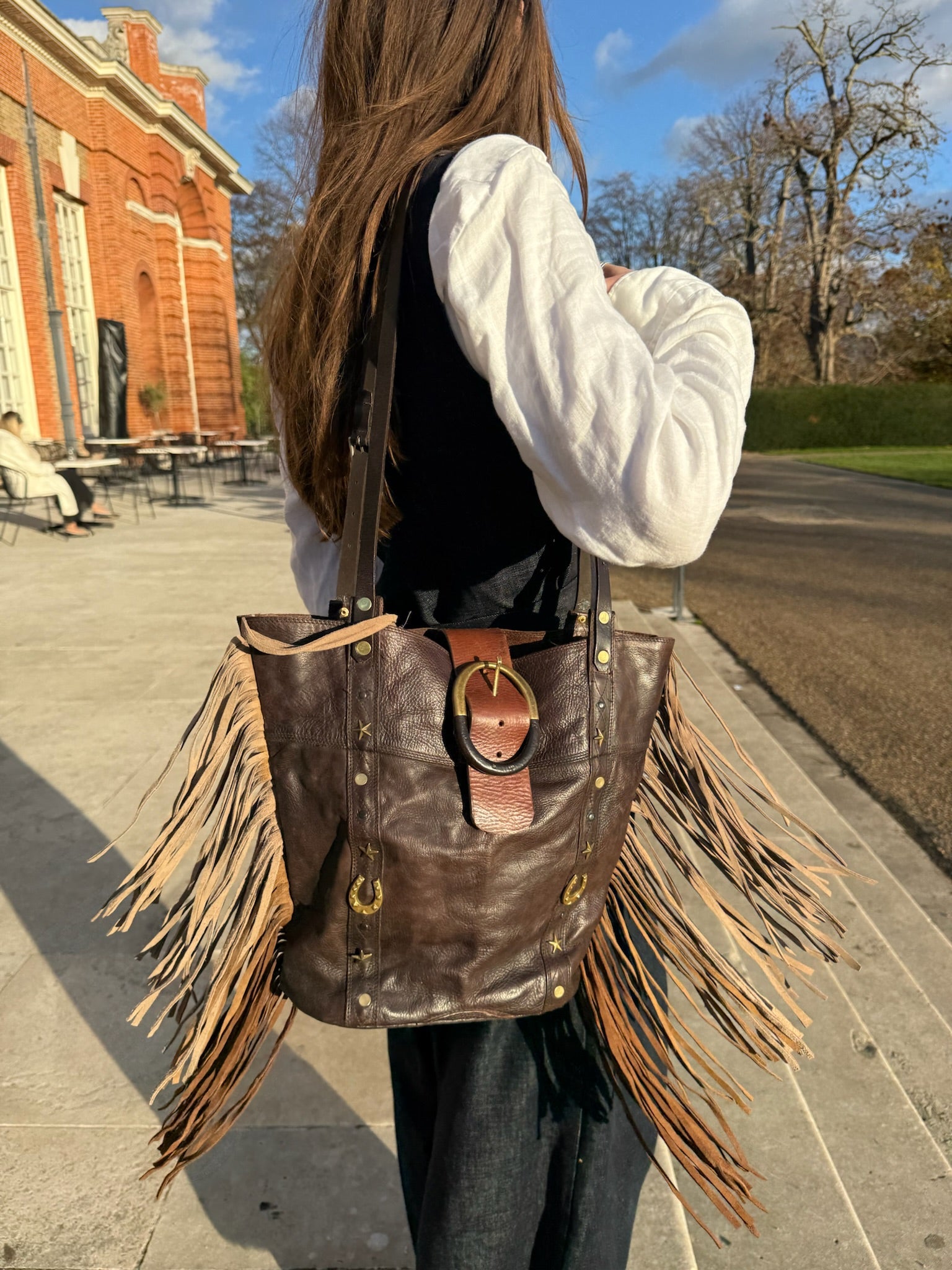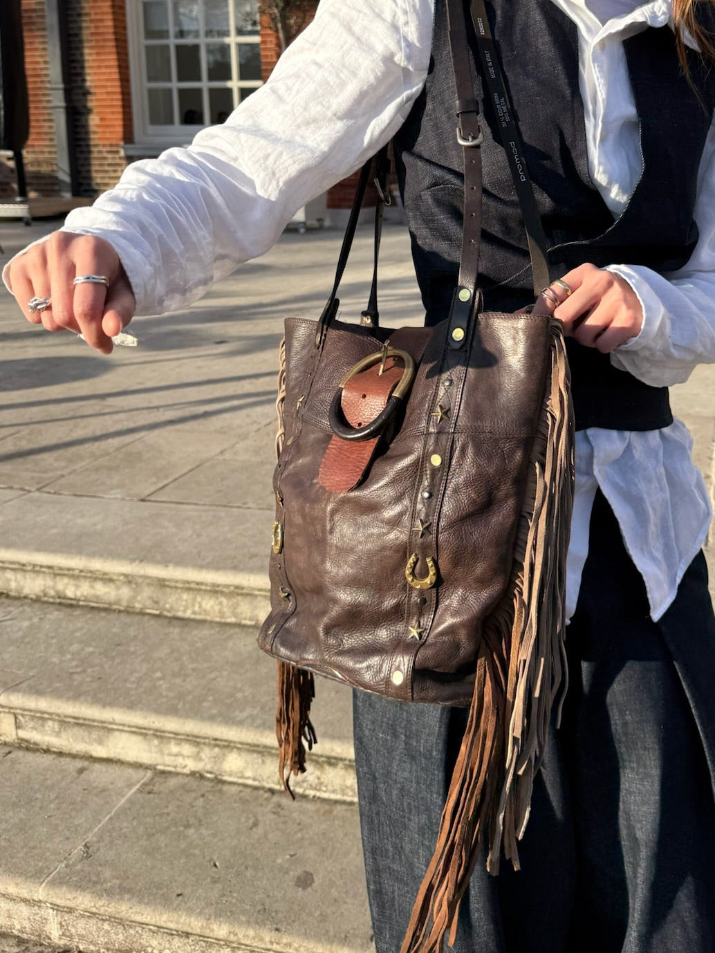 Handcrafted from 100% upcycled leather, the bags are as sustainable as they are stylish. The leather is carefully selected from damaged cowboy boots, buckles from vintage belts, giving new life to materials that would otherwise go to waste.