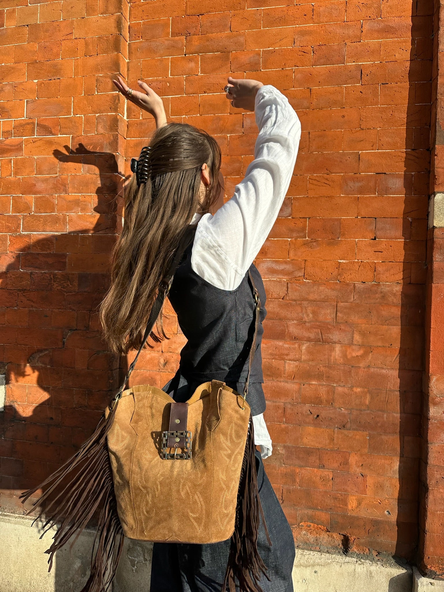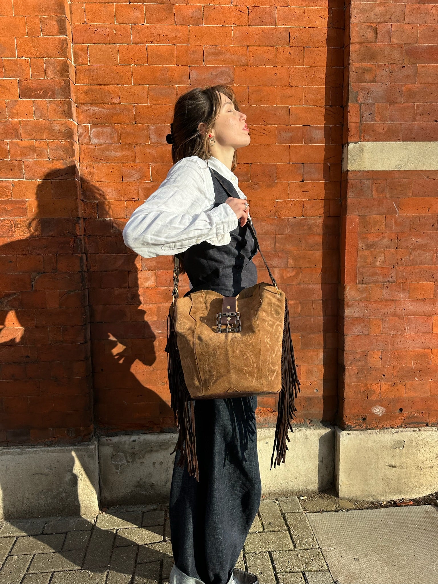 Handcrafted from 100% upcycled leather, the bags are as sustainable as they are stylish. The leather is carefully selected from damaged cowboy boots, buckles from vintage belts, giving new life to materials that would otherwise go to waste.