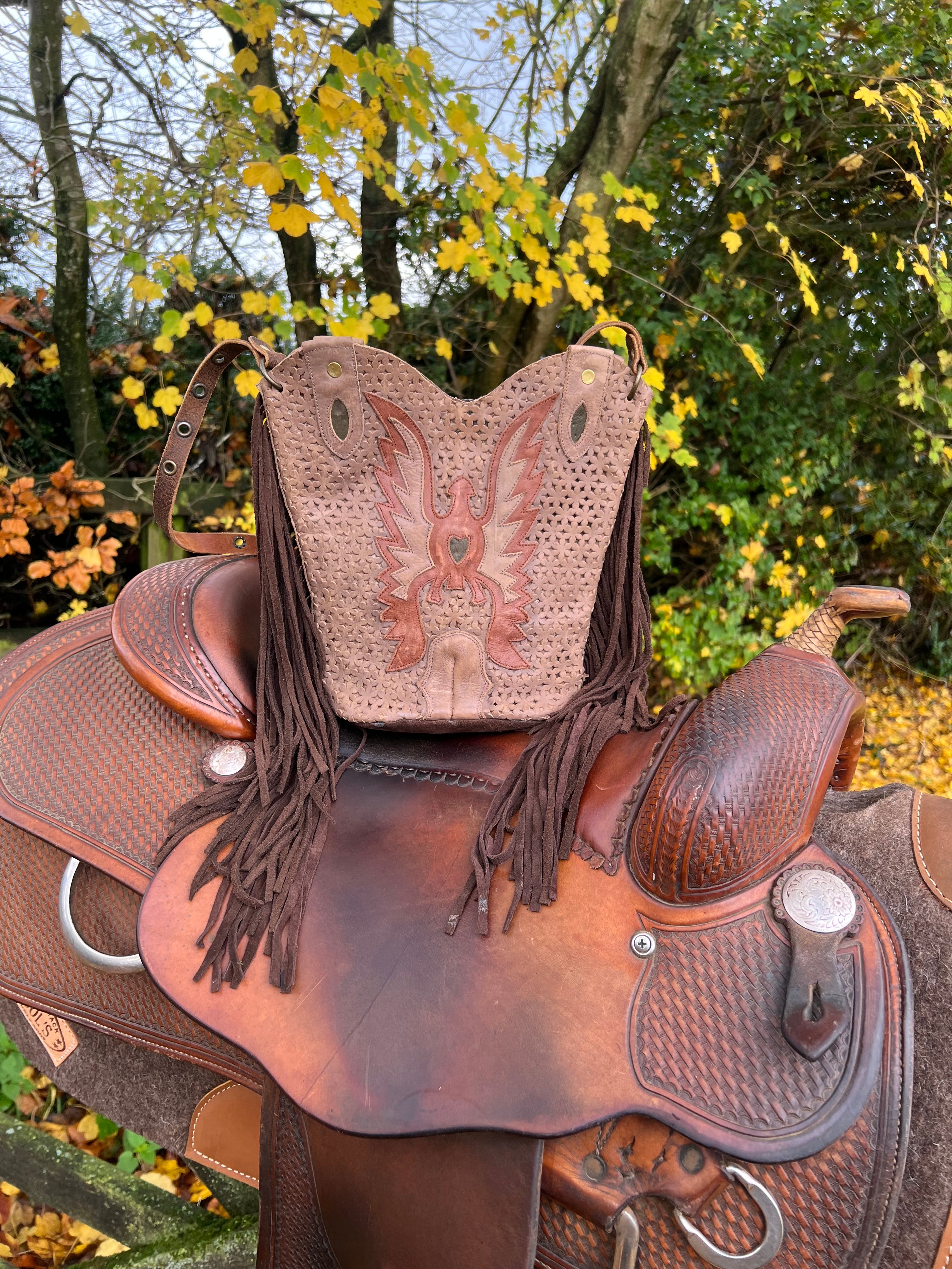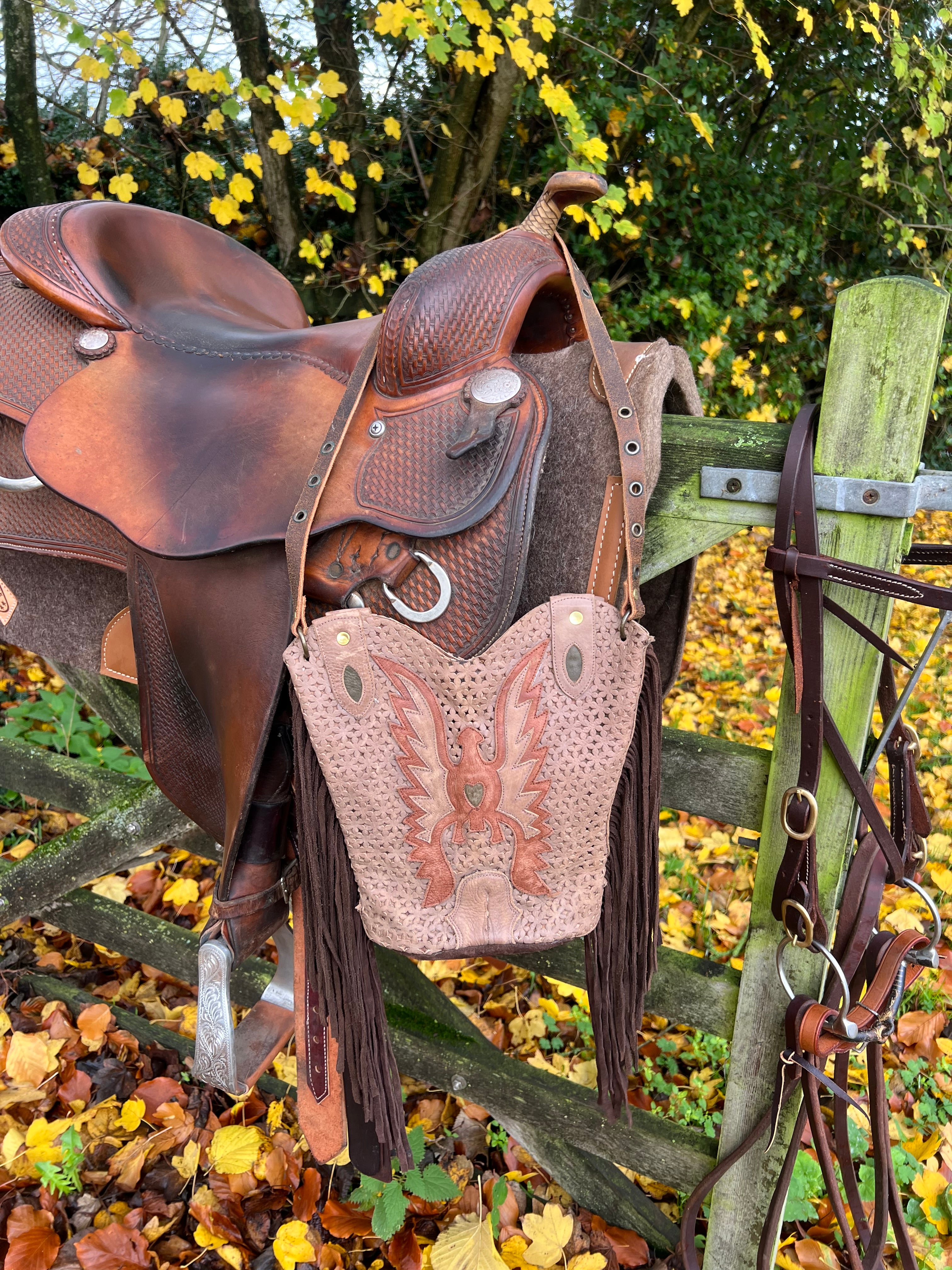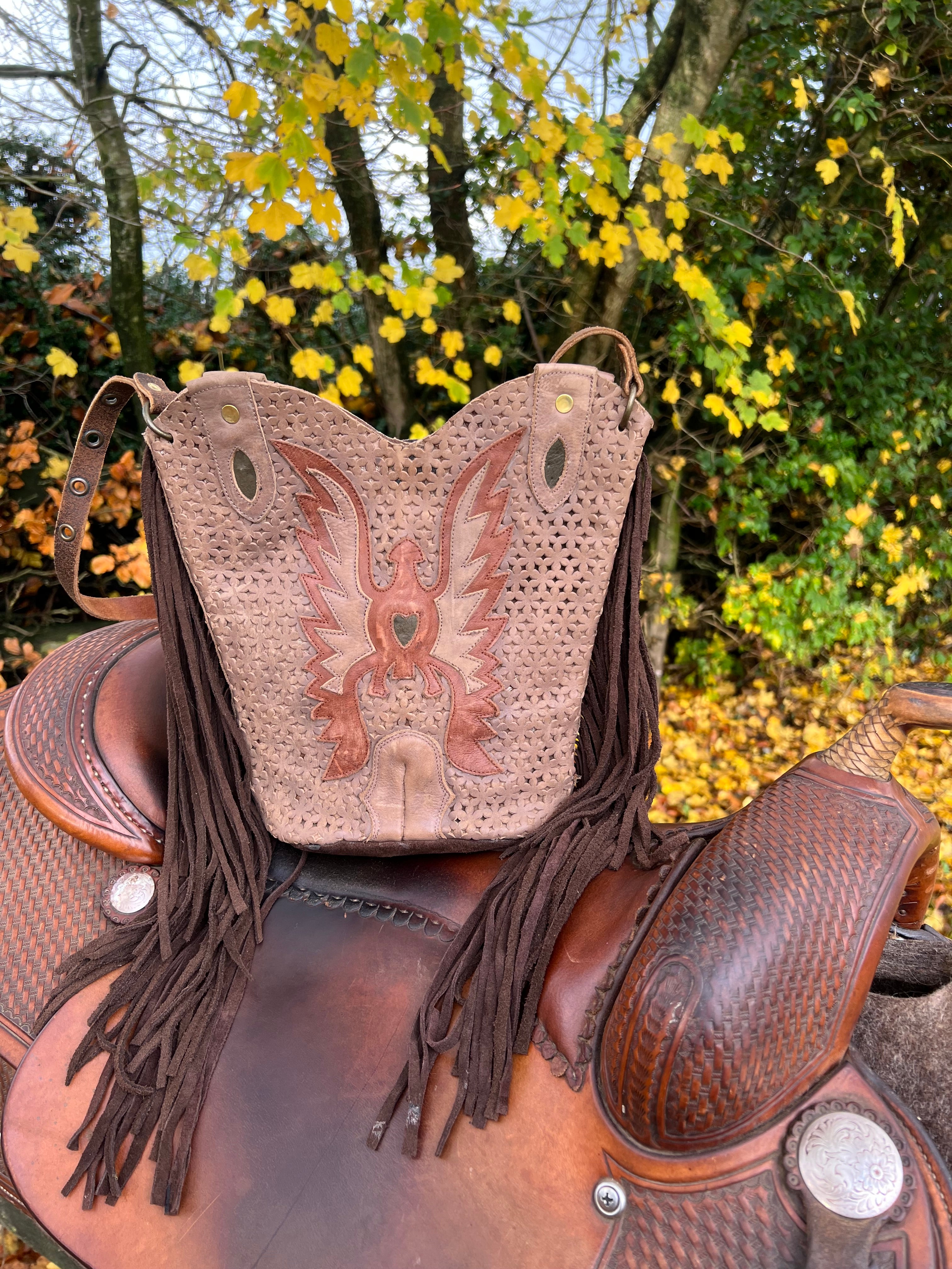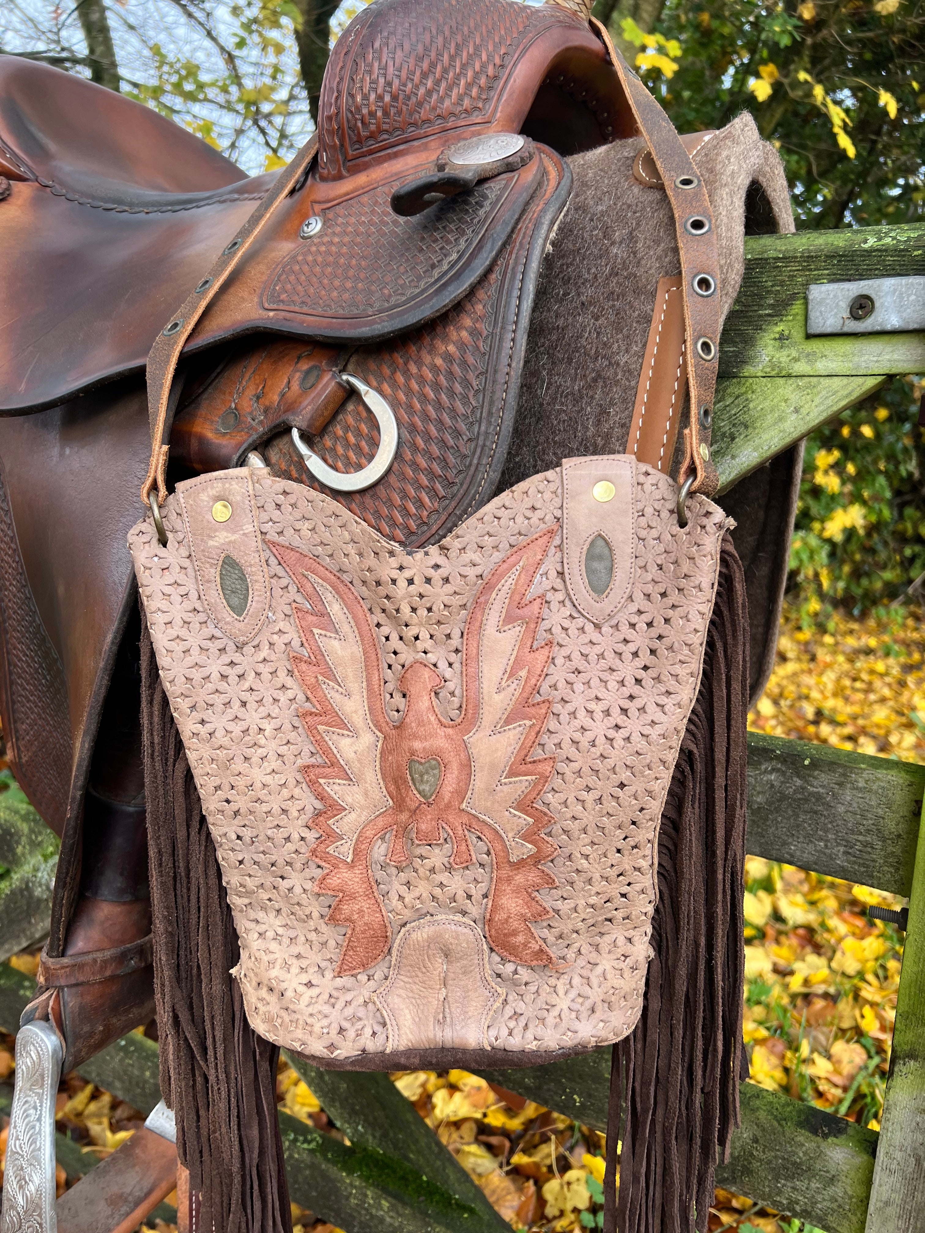 Handcrafted from 100% upcycled leather, the bags are as sustainable as they are stylish. The leather is carefully selected from damaged cowboy boots, buckles from vintage belts, giving new life to materials that would otherwise go to waste.