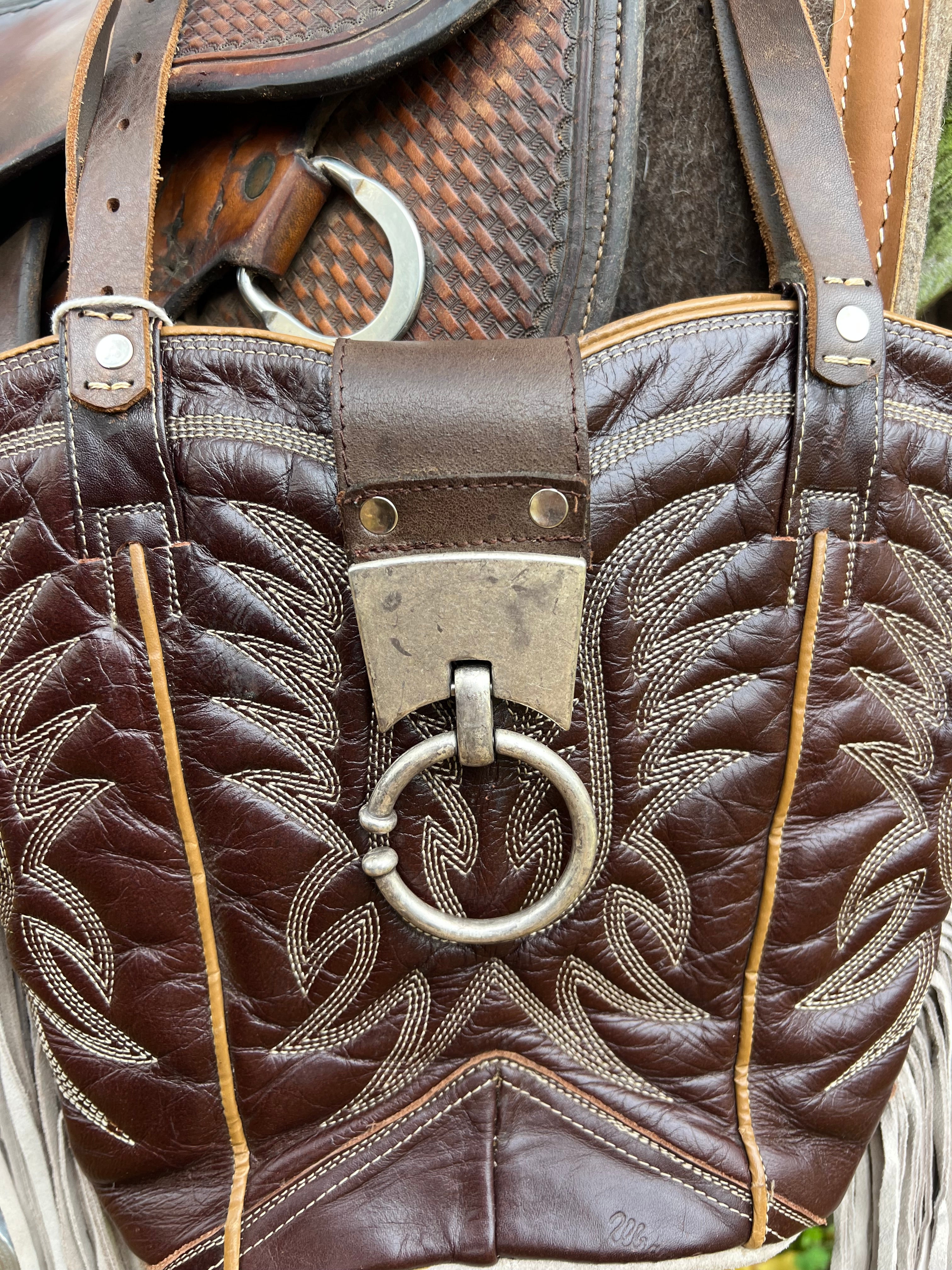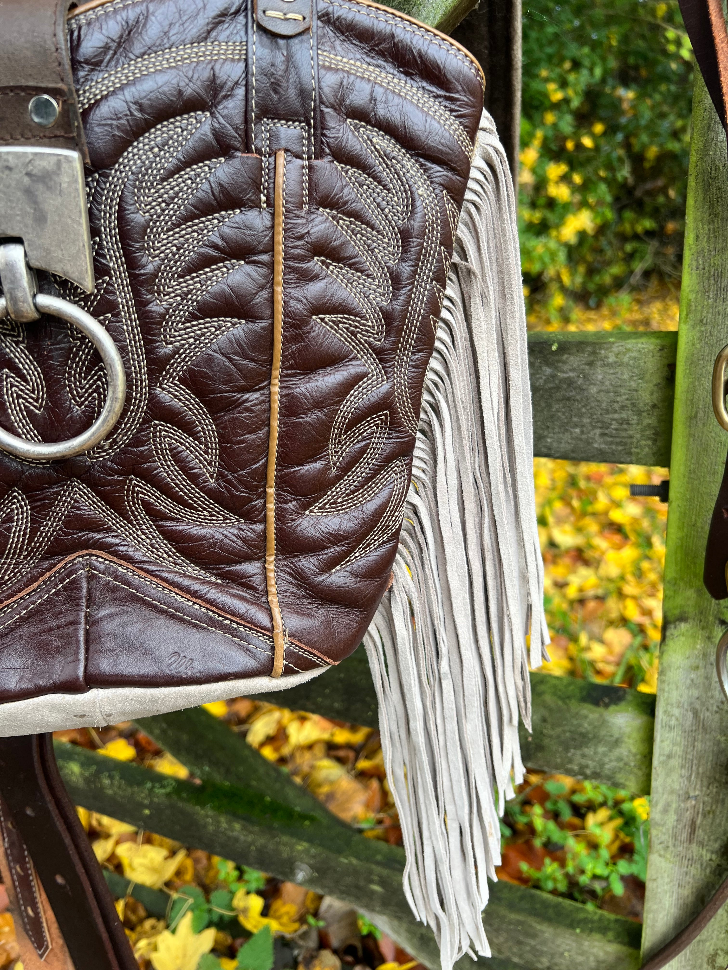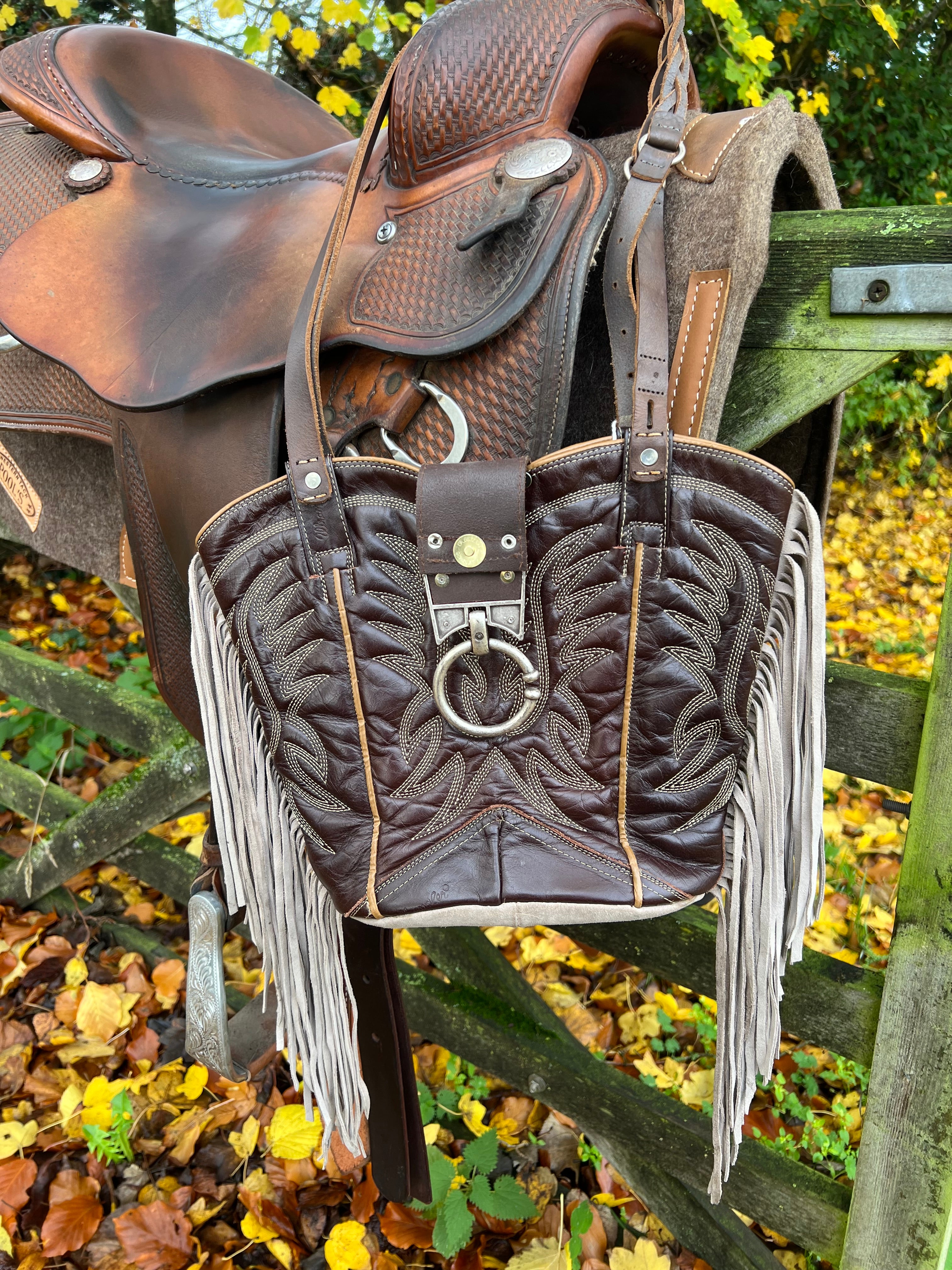 Handcrafted from 100% upcycled leather, the bags are as sustainable as they are stylish. The leather is carefully selected from damaged cowboy boots, buckles from vintage belts, giving new life to materials that would otherwise go to waste.