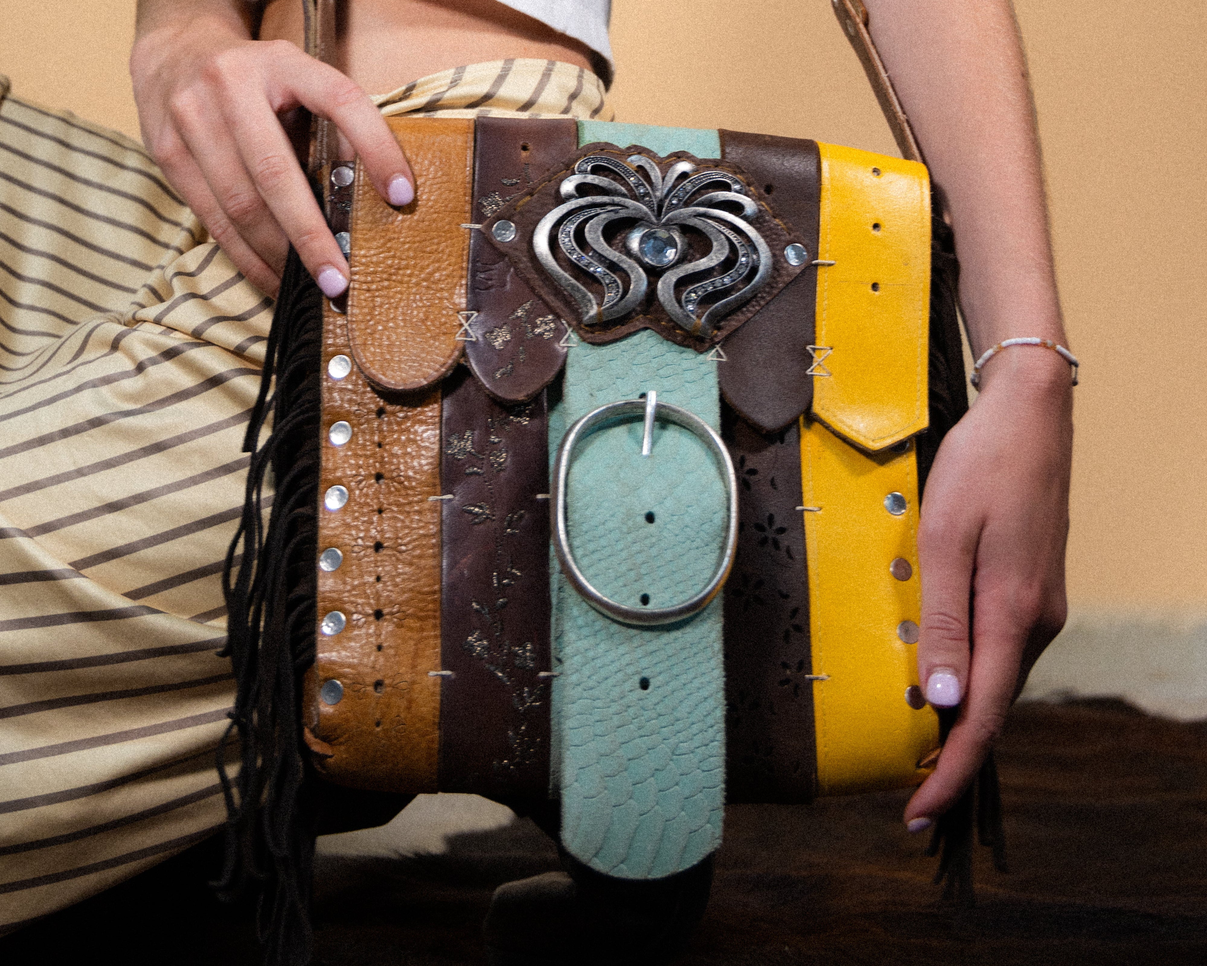 No two are the same. Each one showcases its own blend of textures, colours, and details from the original belts, making your bag truly one-of-a-kind.